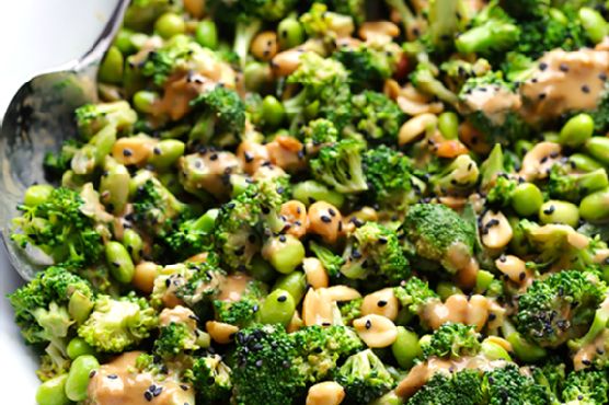 Asian Broccoli Salad with Peanut Sauce is an Asian side dish. For 95 cents per serving, this recipe covers 23% of your daily requirements of vitamins and minerals. One serving contains 261 calories, 13g of protein, and 17g of fat. This recipe serves 6. If you have agave nectar, broccoli, thinly- green onions, and a few other ingredients on hand, you can make it. 4269 people were impressed by this recipe. From preparation to the plate, this recipe takes approximately 15 minutes. It is brought to you by Gimme Some Oven. It is a good option if you're following a dairy free and lacto ovo vegetarian diet. Overall, this recipe earns a spectacular spoonacular score of 100%. Similar recipes include Asian Broccoli Salad with Peanut Sauce, Keto Asian Noodle Salad with Peanut Sauce, and Asian Vegetable Noodle Salad with Spicy Peanut Sauce.
