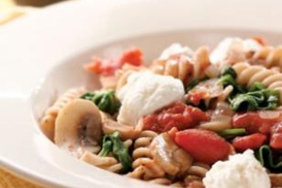 Toss the sauce with the pasta and divide among 4 bowls. Dollop each serving with 3 tablespoons of ricotta.