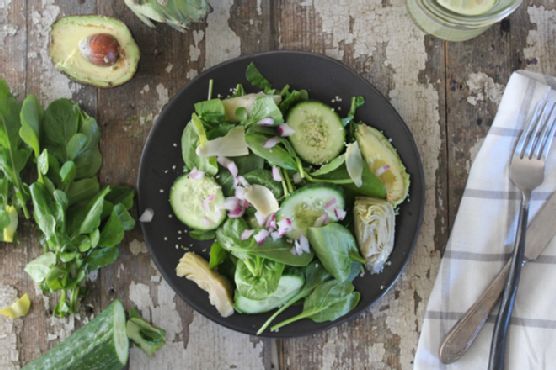 If you have approximately 10 minutes to spend in the kitchen, Avocado Artichoke Arugula & Spinach Salad might be a tremendous gluten free, dairy free, paleolithic, and lacto ovo vegetarian recipe to try. This main course has 500 calories, 23g of protein, and 36g of fat per serving. This recipe serves 1 and costs $4.67 per serving. If you have cucumber, pepper and sea salt, avocado, and a few other ingredients on hand, you can make it. 361 person were impressed by this recipe. It is brought to you by Nutrition Stripped . Overall, this recipe earns a tremendous spoonacular score of 100%. Similar recipes include Arugula Salad With Pomegranate, Avocado and Goat Cheese, Avocado Sweet Lassi - How to make Avocado Lassi - Indian Avocado, and Mediterranean Spinach Artichoke Dip.