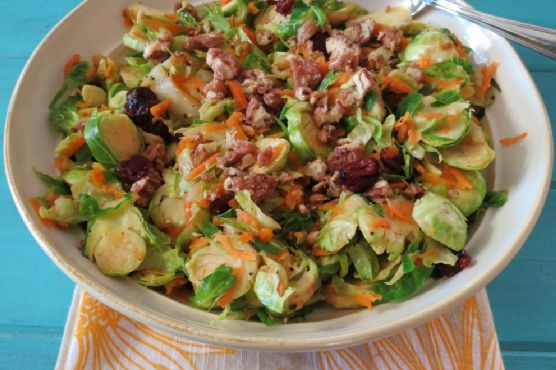 Fall Harvest Brussels Sprouts takes approximately 18 minutes from beginning to end. This recipe makes 4 servings with 140 calories, 3g of protein, and 4g of fat each. For 96 cents per serving, this recipe covers 17% of your daily requirements of vitamins and minerals. 2028 people found this recipe to be yummy and satisfying. Head to the store and pick up brussels sprouts, candied pecans, carrot, and a few other things to make it today. Plenty of people really liked this side dish. It can be enjoyed any time, but it is especially good for Autumn. It is brought to you by Peanut Butter and Peepers. It is a good option if you're following a gluten free, dairy free, paleolithic, and lacto ovo vegetarian diet. All things considered, we decided this recipe deserves a spoonacular score of 100%. This score is outstanding. Try Fall Harvest Soup, Bacon Brussels Sprouts With Chanterelle Mushrooms, and Brussels Sprouts In Honey Butter With Chili Flakes for similar recipes.