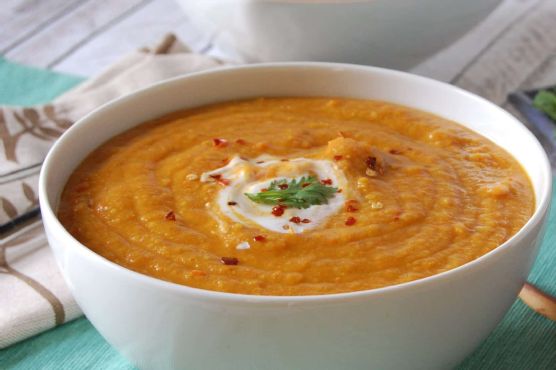 Moroccan Carrot Red Lentil Soup is a main course that serves 4. For $1.87 per serving, this recipe covers 38% of your daily requirements of vitamins and minerals. Watching your figure? This gluten free, dairy free, lacto ovo vegetarian, and vegan recipe has 448 calories, 25g of protein, and 9g of fat per serving. Several people made this recipe, and 194 would say it hit the spot. Head to the store and pick up vegetable broth, salt and pepper, olive oil, and a few other things to make it today. From preparation to the plate, this recipe takes about 50 minutes. It can be enjoyed any time, but it is especially good for Autumn. It is brought to you by A Cedar Spoon. Taking all factors into account, this recipe earns a spoonacular score of 100%, which is amazing. If you like this recipe, you might also like recipes such as Moroccan Carrot Red Lentil Soup, Moroccan Carrot Red Lentil Soup, and Moroccan Carrot Red Lentil Soup.