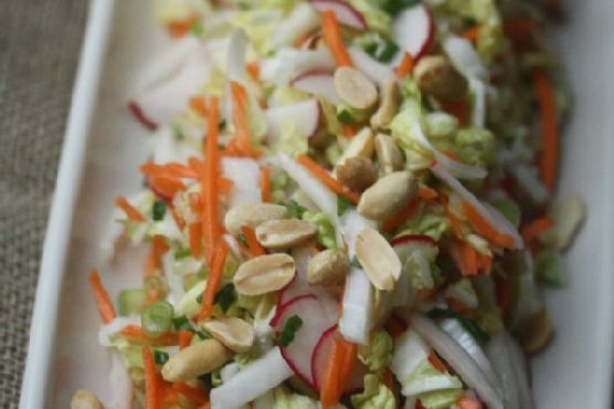 If you want to add more gluten free, dairy free, paleolithic, and primal recipes to your recipe box, Meatless Monday: Thai Peanut Slaw might be a recipe you should try. This side dish has 135 calories, 6g of protein, and 7g of fat per serving. This recipe serves 6 and costs 97 cents per serving. 428 people were glad they tried this recipe. This recipe is typical of Asian cuisine. It will be a hit at your The Fourth Of July event. It is brought to you by Feed Me Phoebe. A mixture of radishes, fish sauce, rice wine vinegar, and a handful of other ingredients are all it takes to make this recipe so tasty. From preparation to the plate, this recipe takes roughly 10 minutes. Overall, this recipe earns an excellent spoonacular score of 100%. Thai Veggie Slaw with Peanut Dressing and Crispy Wontons, Meatless Eggs Benedict, and Gluten Free Vegetarian Spring Rolls With Thai-Style Peanut Sauce are very similar to this recipe.