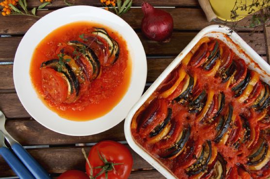 Ratatouille requires about 45 minutes from start to finish. This gluten free, dairy free, paleolithic, and lacto ovo vegetarian recipe serves 3 and costs $3.08 per serving. One serving contains 469 calories, 8g of protein, and 30g of fat. 21481 person found this recipe to be flavorful and satisfying. Head to the store and pick up garlic, bell peppers, zucchini, and a few other things to make it today. It works well as a rather pricey hor d'oeuvre. This recipe is typical of Mediterranean cuisine. It is brought to you by happykitchen.rocks. Taking all factors into account, this recipe earns a spoonacular score of 100%, which is excellent. Users who liked this recipe also liked Ratatouille’s Ratatouille (Thomas Keller’s Confit Byaldi), Confit Byaldi (aka Ratatouille’s Ratatouille), and Confit Byaldi (aka Ratatouille’s Ratatouille).