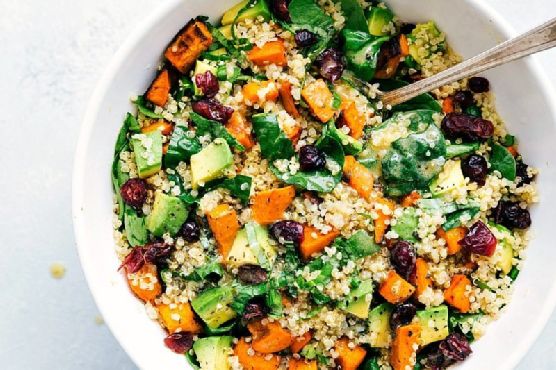 Roasted Sweet Potato Quinoa Salad is a gluten free, dairy free, lacto ovo vegetarian, and vegan side dish. This recipe serves 4. One portion of this dish contains roughly 10g of protein, 43g of fat, and a total of 632 calories. For $2.08 per serving, this recipe covers 30% of your daily requirements of vitamins and minerals. 61702 people have made this recipe and would make it again. A mixture of oregano, wine vinegar, spinach, and a handful of other ingredients are all it takes to make this recipe so flavorful. From preparation to the plate, this recipe takes roughly 20 minutes. It is brought to you by Chelsea's Messy Apron. Overall, this recipe earns an excellent spoonacular score of 91%. If you like this recipe, you might also like recipes such as Quinoa Salad with Roasted Sweet Potato, Kale & Pesto Vinaigrette, Roasted Sweet Potato Quinoa Salad with Maple-Orange Dressing, and Roasted Sweet Potato and Quinoa Soup.