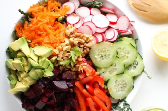 Add the remaining ingredients to the serving bowl and add desired amount of dressing. Toss everything together to combine.In a small blender or food processor, add all of the ingredients for the dressing and blend until smooth and creamy. If you dont have a small blender, whisking the ingredients together in a bowl works well, too.