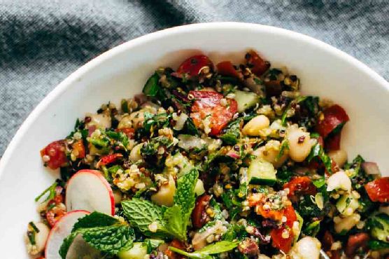 Lemony Herb-Loaded Chopped Greek Salad requires around 45 minutes from start to finish. This gluten free, dairy free, lacto ovo vegetarian, and vegan recipe serves 4 and costs $2.56 per serving. One portion of this dish contains roughly 17g of protein, 20g of fat, and a total of 505 calories. Head to the store and pick up lemon juice, herbs - i like mint, kalamatan olives, and a few other things to make it today. 4158 people have tried and liked this recipe. It is brought to you by Pinch of Yum. Several people really liked this Mediterranean dish. It works well as a main course. Taking all factors into account, this recipe earns a spoonacular score of 100%, which is outstanding. Similar recipes include Lemony Herb-Loaded Chopped Greek Salad, Lemony Herb-Loaded Chopped Greek Salad, and Lemony Herb-Loaded Chopped Greek Salad.