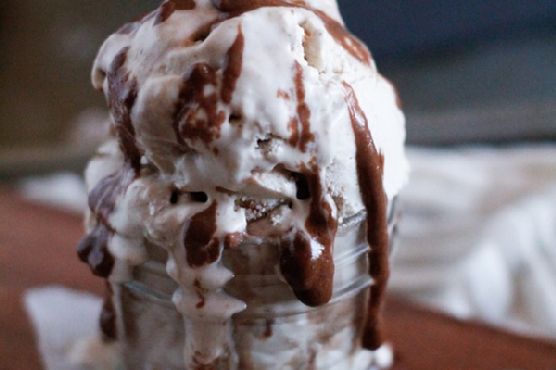 Add the remaining half of the ice cream, followed by the remaining half of the ganache. Note: you can reserve some of the ganache to heat up for serving like a hot fudge if desired.Cover and place in the freezer for at least 4 hours.When ready to serve, thaw the ice cream for at least 10 minutes.