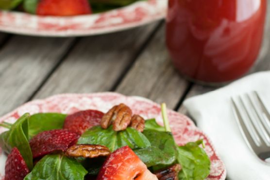 You can never have too many hor d'oeuvre recipes, so give Spinach Strawberry Salad with Strawberry Vinaigrette a try. Watching your figure? This gluten free, dairy free, paleolithic, and lacto ovo vegetarian recipe has 141 calories, 2g of protein, and 13g of fat per serving. For $1.16 per serving, this recipe covers 15% of your daily requirements of vitamins and minerals. This recipe serves 6. 29013 people have tried and liked this recipe. From preparation to the plate, this recipe takes about 15 minutes. Head to the store and pick up baby spinach, strawberry vinegar, olive oil, and a few other things to make it today. It is perfect for Mother's Day. It is brought to you by A Family Feast . All things considered, we decided this recipe deserves a spoonacular score of 100%. This score is great. Similar recipes include Strawberry Avocado Spinach Salad with Strawberry Vinaigrette, Strawberry Avocado Spinach Salad with Strawberry Vinaigrette, and Spinach Strawberry Salad with Strawberry Vinaigrette.
