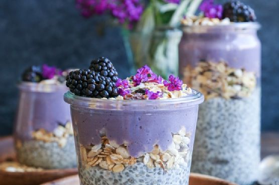 Blackberry Smoothie Chia Seed Pudding Parfaits is a dessert that serves 3. Watching your figure? This dairy free recipe has 472 calories, 16g of protein, and 16g of fat per serving. For $2.0 per serving, this recipe covers 40% of your daily requirements of vitamins and minerals. 1 person found this recipe to be tasty and satisfying. If you have bob's mill muesli, non-dairy milk see note, chia seeds, and a few other ingredients on hand, you can make it. From preparation to the plate, this recipe takes roughly 15 minutes. It is brought to you by The Roasted Root. With a spoonacular score of 76%, this dish is good. Similar recipes are Matcha Chia Seed Pudding & Apricot Smoothie Parfaits, Chia Seed Pudding Parfaits, and Chia Seed Pudding Parfaits.
