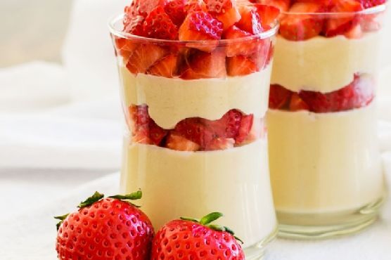 Top with, or layer with (it can be piped), diced strawberries to serve.