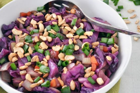 Easy Cabbage Stir Fry is a hor d'oeuvre that serves 4. One portion of this dish contains around 10g of protein, 18g of fat, and a total of 330 calories. For $1.77 per serving, this recipe covers 28% of your daily requirements of vitamins and minerals. It is a good option if you're following a gluten free, dairy free, lacto ovo vegetarian, and vegan diet. 143 people were glad they tried this recipe. From preparation to the plate, this recipe takes about 35 minutes. If you have purple cabbage, green onions, celery stalks, and a few other ingredients on hand, you can make it. It is brought to you by My Whole Food Life. Taking all factors into account, this recipe earns a spoonacular score of 99%, which is super. Try One-Pot Beef and Cabbage Stir Fry (Easy + Paleo), One-Pot Beef and Cabbage Stir Fry (Easy + Paleo), and Stir-Fry Cabbage for similar recipes.