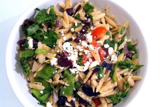 The recipe Greek Orzo Pasta Salad can be made in approximately 20 minutes. One portion of this dish contains approximately 8g of protein, 6g of fat, and a total of 252 calories. For $1.22 per serving, this recipe covers 19% of your daily requirements of vitamins and minerals. This recipe serves 4. 775 people found this recipe to be delicious and satisfying. If you have bell pepper, salt, onion, and a few other ingredients on hand, you can make it. It works well as a hor d'oeuvre. It is a budget friendly recipe for fans of Mediterranean food. It is a good option if you're following a dairy free diet. It is brought to you by Hummusapien. Taking all factors into account, this recipe earns a spoonacular score of 99%, which is awesome. If you like this recipe, you might also like recipes such as Greek Shrimp Orzo, Light Greek Lemon Chicken Orzo Soup, and Mediterranean Orzo Salad.