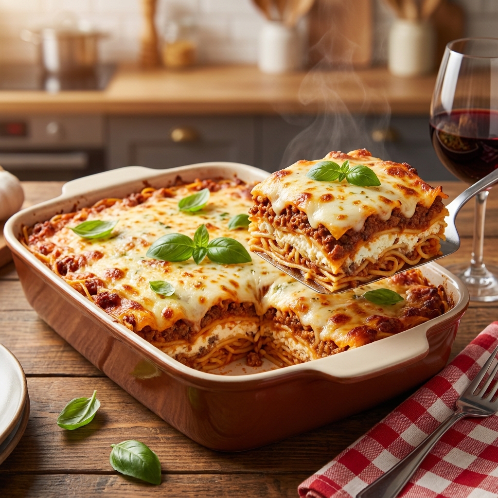 A luxurious baked pasta dish featuring layers of tender spaghetti, creamy cream cheese mixture, savory meat sauce, and a blanket of melted mozzarella and cheddar that creates the ultimate comfort food experience.