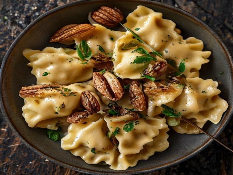 Agnolotti with Roasted Broccoli and Spinach in a Buttered Pine Nut Sauce