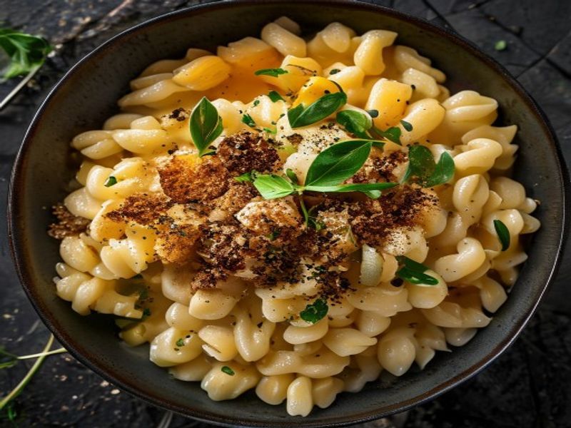Combine lemon zest, dehydrated parsley, and microplaned garlic to create the gremolata dust.