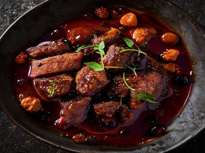 Pan-seared venison loin coated in a vibrant Szechuan peppercorn rub, served with a complex sweet-heat gastrique and a silky charred shishito cream.