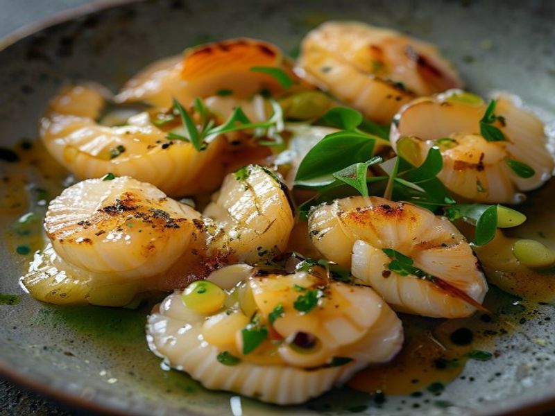 A sophisticated interplay of oceanic sweetness and citrus brightness, featuring ultra-smooth edamame purée, nutty brown-butter miso, and a vibrant herb-infused oil.
