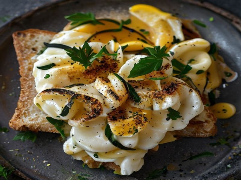 A sophisticated blend of creamy Italian burrata and Japanese umami, brightened with citrus-chili honey on charred artisanal sourdough.