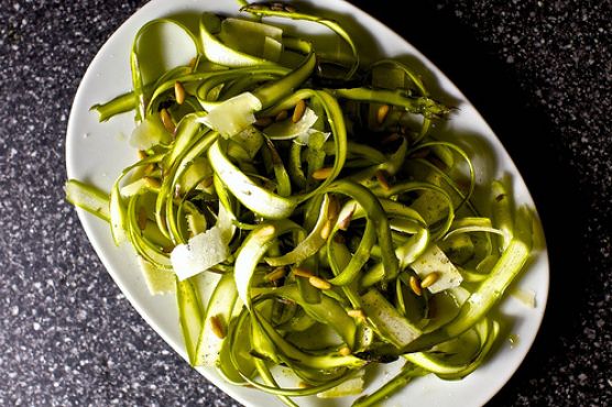 The recipe Ribboned Asparagus Salad With Lemon can be made in approximately 10 minutes. For $5.7 per serving, you get a main course that serves 1. One portion of this dish contains around 26g of protein, 34g of fat, and a total of 490 calories. 1469 people have made this recipe and would make it again. If you have parmesan cheese, asparagus, coarse salt, and a few other ingredients on hand, you can make it. It is brought to you by Smitten Kitchen. It is a good option if you're following a gluten free and primal diet. Overall, this recipe earns an excellent spoonacular score of 100%. Try Meyer Lemon Scented Farro and Asparagus Salad, Asparagus Lemon Risotto, and Shrimp and Asparagus Foil Packs with Garlic Lemon Butter Sauce for similar recipes.