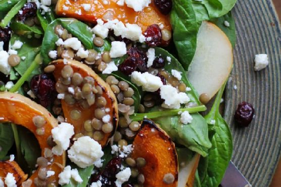 If you want to add more gluten free and lacto ovo vegetarian recipes to your recipe box, Roasted Butternut Squash and Pear Salad with Lentils might be a recipe you should try. This recipe serves 3 and costs $2.65 per serving. One portion of this dish contains around 13g of protein, 29g of fat, and a total of 579 calories. Head to the store and pick up ground cinnamon, feta cheese, salt, and a few other things to make it today. It is brought to you by The Roasted Root. Plenty of people made this recipe, and 451 would say it hit the spot. It works best as a main course, and is done in around 50 minutes. With a spoonacular score of 100%, this dish is great. If you like this recipe, take a look at these similar recipes: Pear, Pomegranate and Roasted Butternut Squash Salad with Maple Sesame Vinaigrette, Roasted Butternut Squash & Pear Soup, and Butternut Squash, Pear and Chestnut Salad.