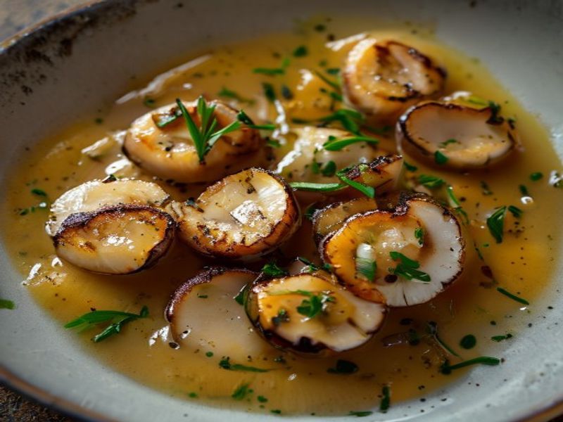 Plating: Spoon a generous pool of saffron fennel velouté onto the center of a warmed plate. Arrange three mushroom 'scallops' atop the purée. Garnish with the crispy caper gremolata and reserved fennel fronds.