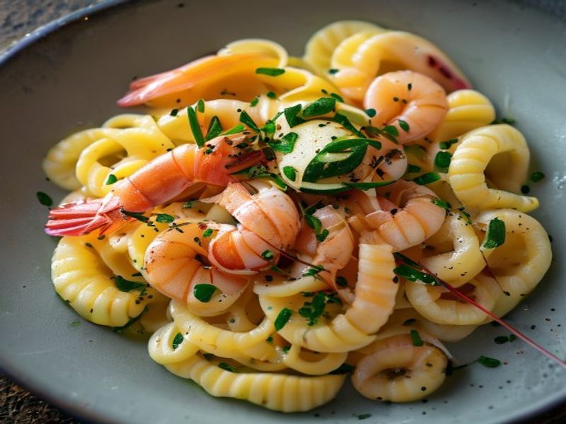 Hand-cut saffron-infused pasta paired with chilled Mediterranean langoustine crudo and a delicate floral emulsion.