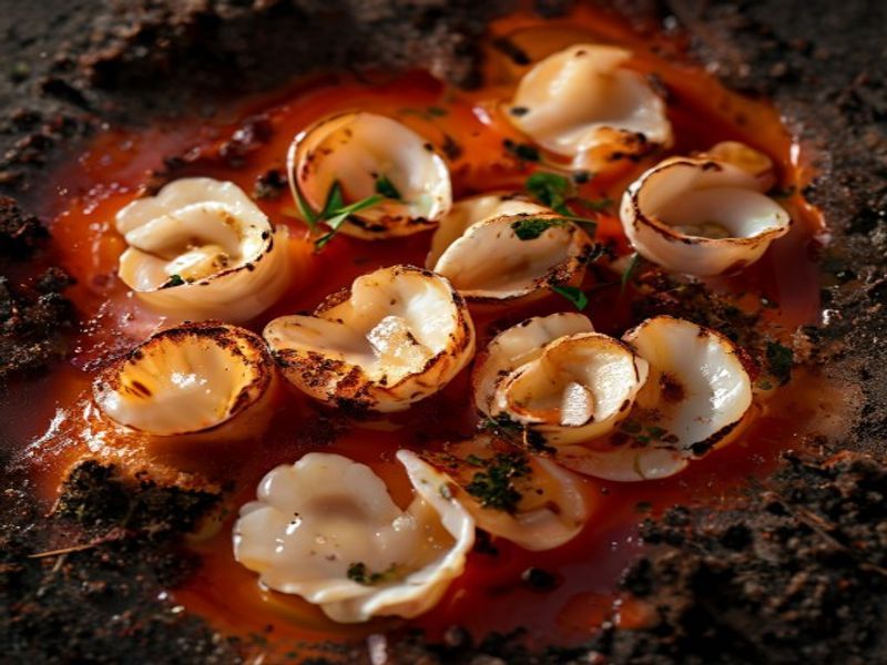 Pan-seared U-10 scallops served over a silky Calabrian chili foam, accented with crispy Nduja crumbs and quick-pickled serrano chilies for a multi-layered spicy experience.