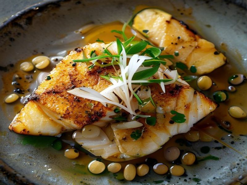 Prepare the aromatics: Shave the fennel bulb using a mandoline and immediately submerge in ice water to curl. Blanch the sea beans in boiling water for 30 seconds, then shock in ice water to maintain vibrant color and crunch.